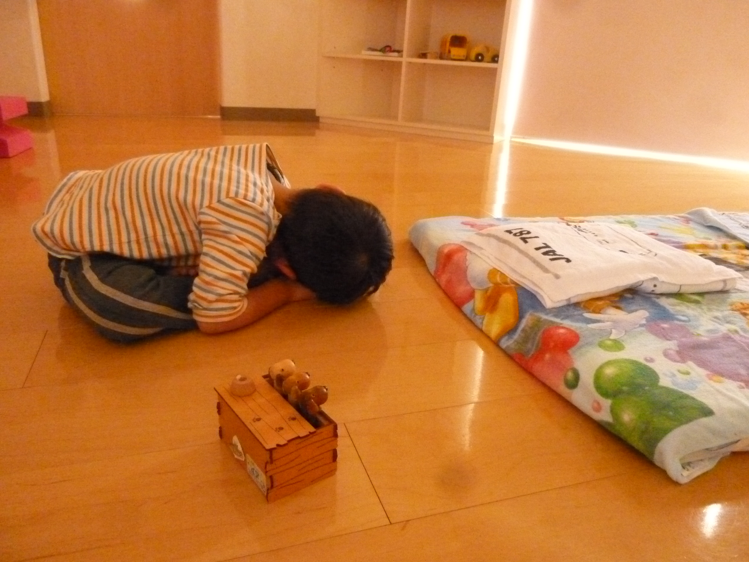 布団には入らず、「まだあそぶもん」って床に寝ちゃった‥☆